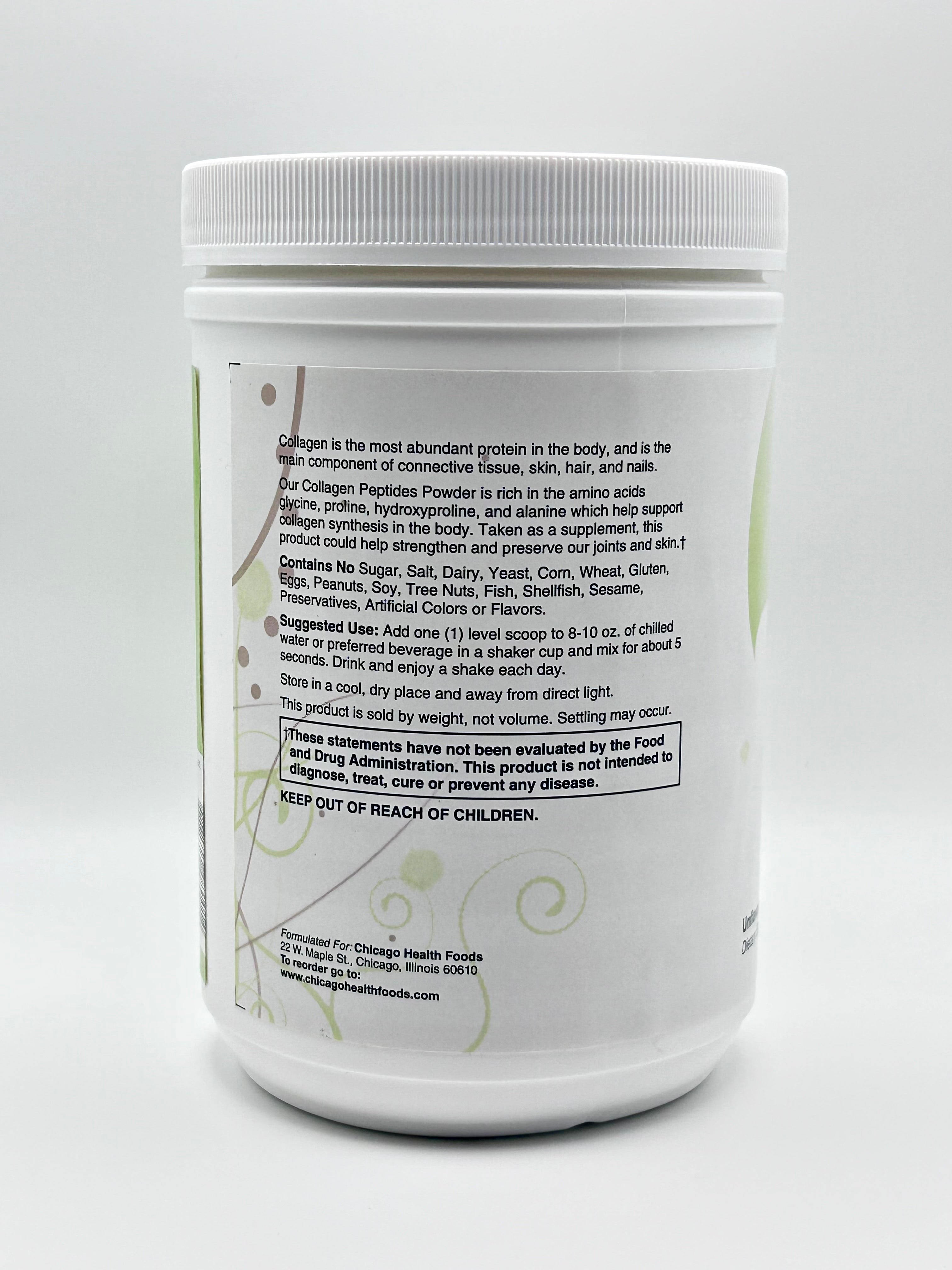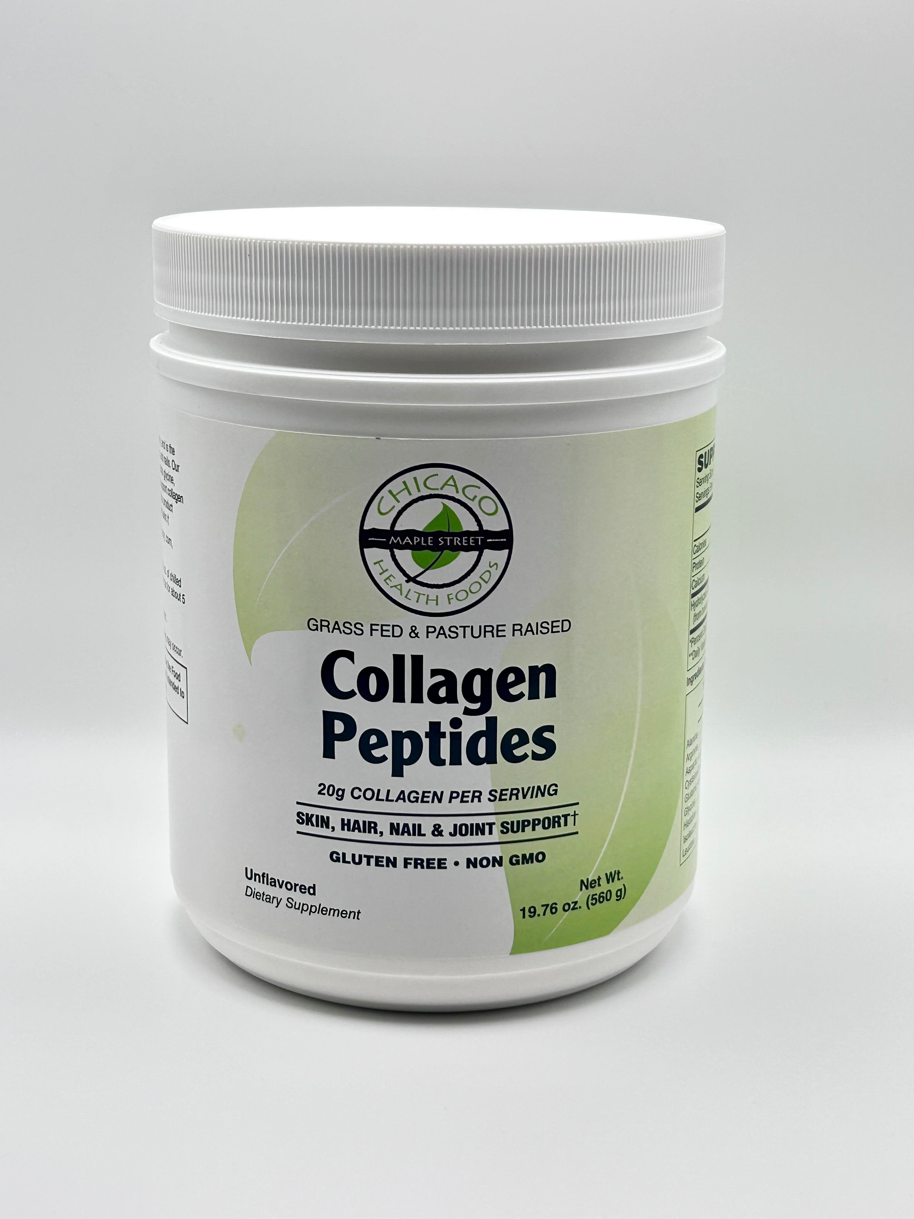 Collagen is the most abundant protein in the body, and is the main component of connective tissue. It is the tough, fibrous protein in hair, nails, tendons, ligaments, and skin. Collagen helps preserve the elastin in skin, helping it to stay toned and supple, and collagen also gives tendons and ligaments their toughness. As we age, our body begins producing less collagen, which is one reason why skin starts to sag and joints become achy. Our Collagen Peptides Powder is hydrolyzed and contains types 1 & 3 collagen which supports skin, muscles and bone health.† Hydrolyzed collagen is easier to absorb, allowing the amino acids to be utilized more efficiently. Collagen Peptides Powder is rich in the amino acids glycine, proline, hydroxyproline and alanine which helps promote collagen synthesis in our body.